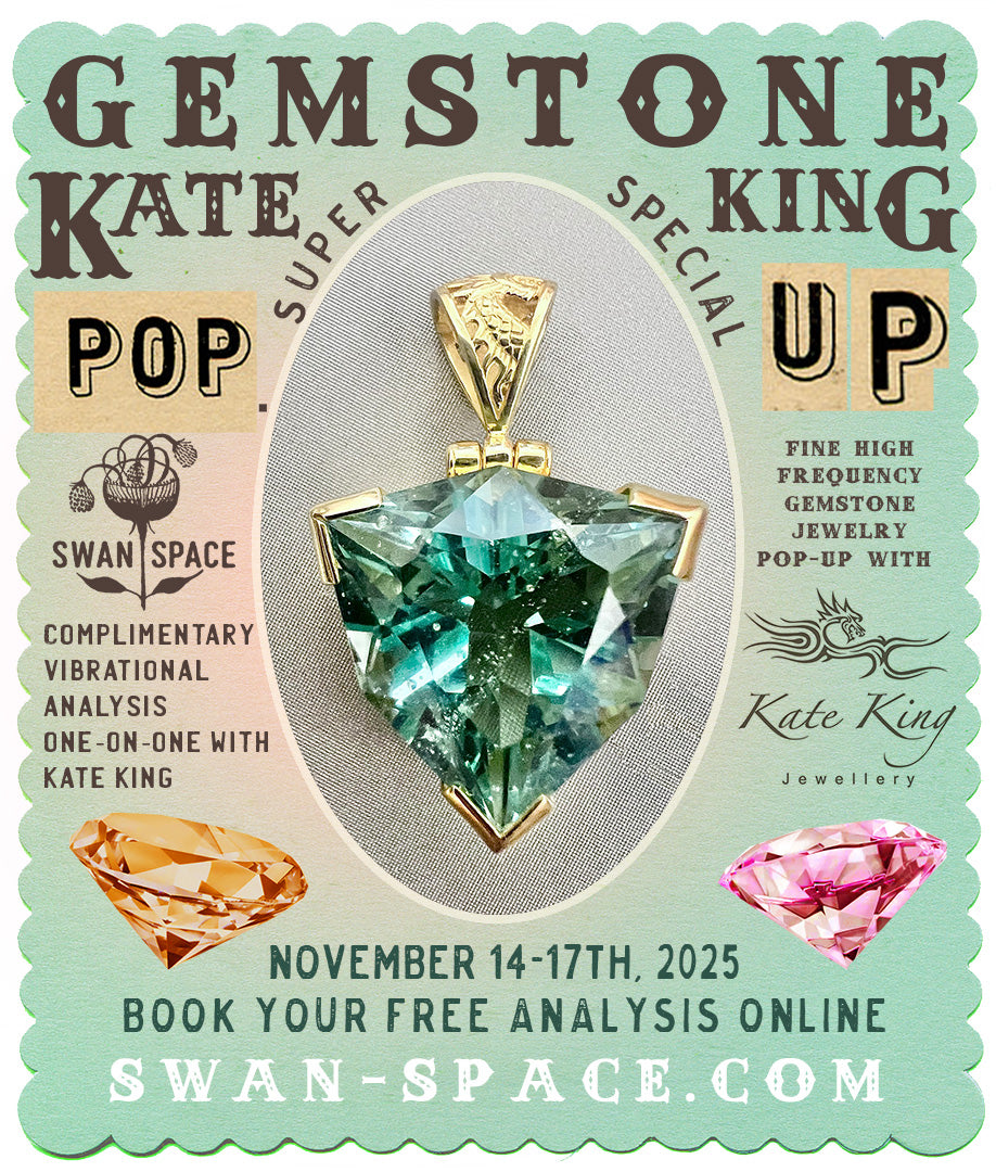 Call to schedule your in store one-on-one Vibrational Analysis at Swan Space. (404) 360-7299. Or stop by to experience the beauty of Kate King Gemstones.